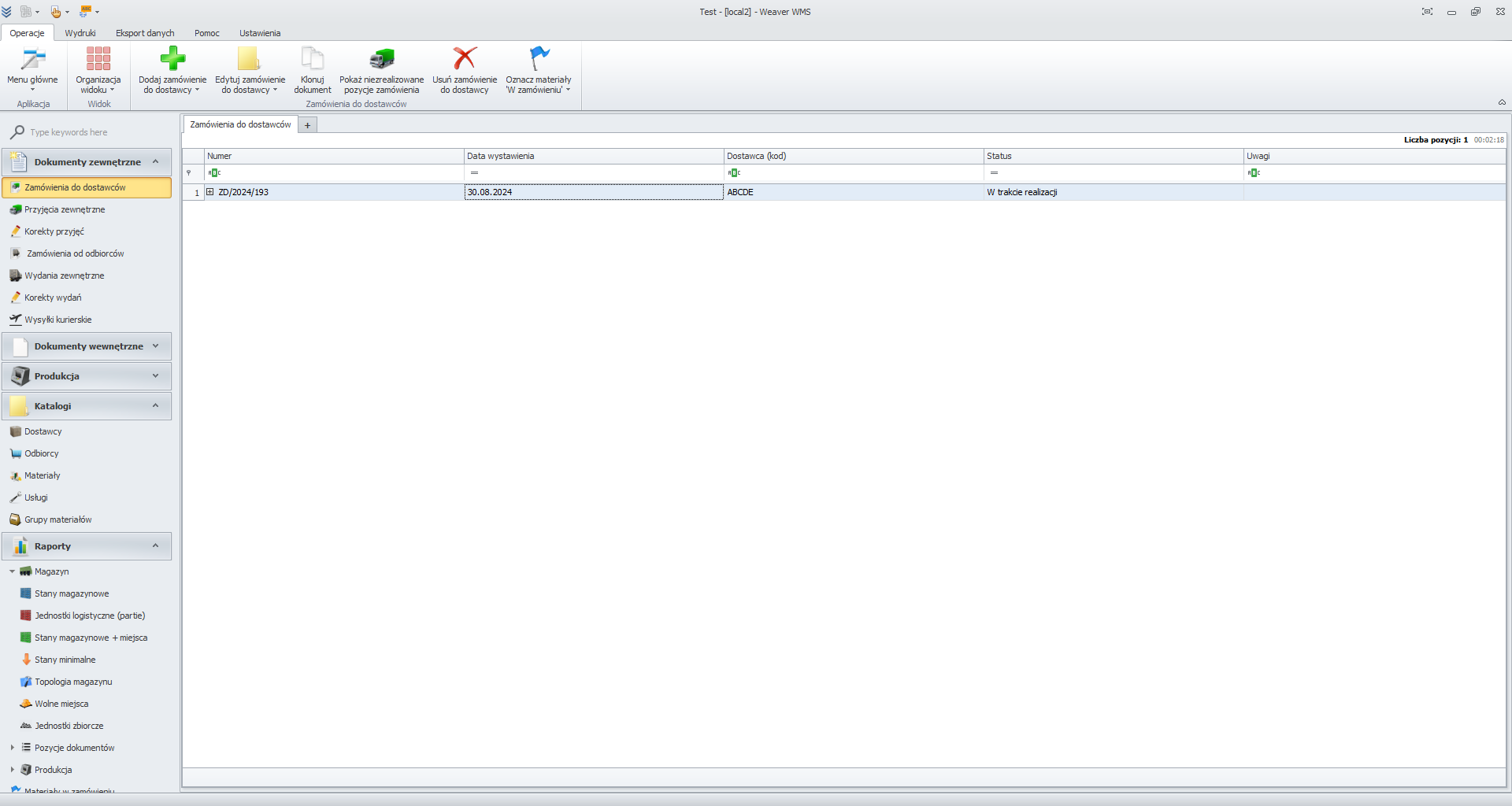 With our integration, we can create an order from a supplier in ERP Subiekt Nexo, and then they sync with Weaver WMS, allowing you to receive them in stock.