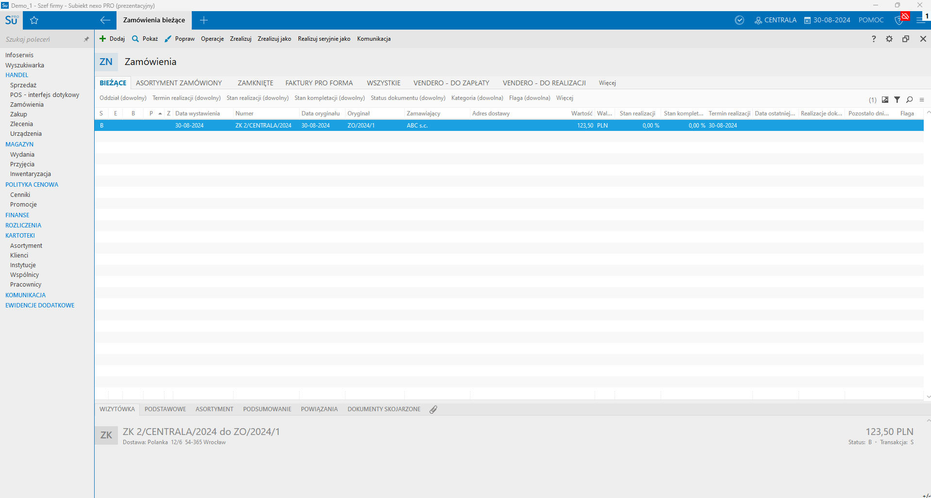Integration with the external system Subiekt Nexo enables the exchange of data, among other documents, with the warehouse system Weaver WMS in real time..