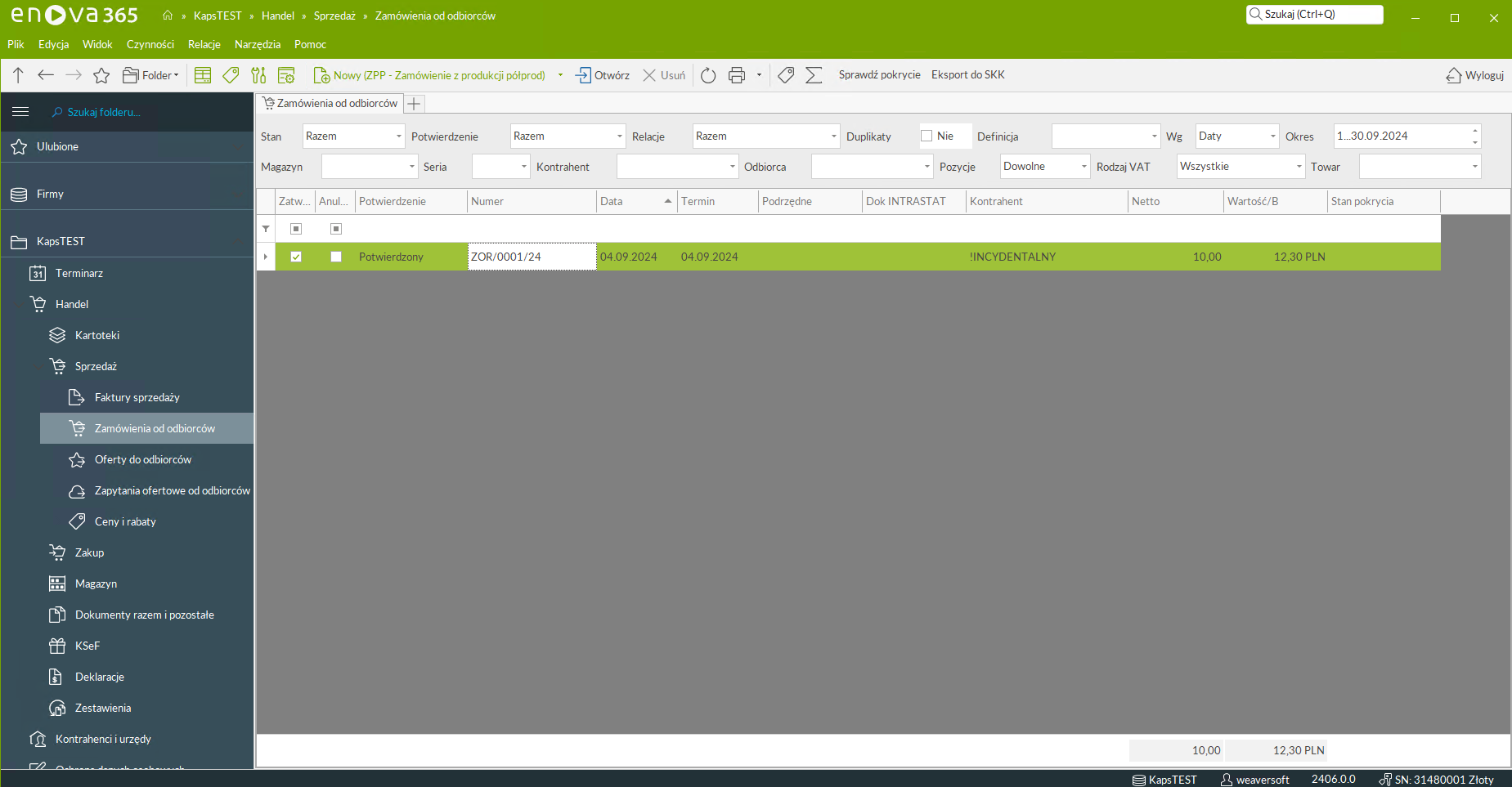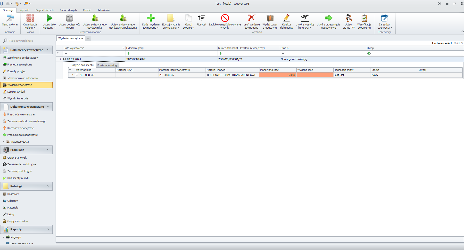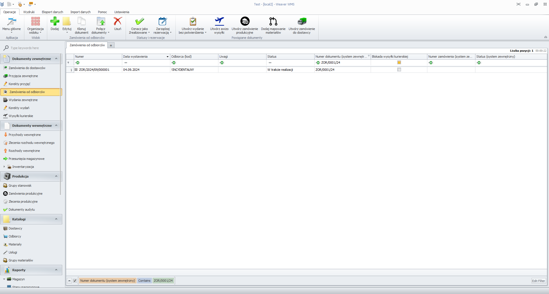 Thanks to our integration, we can create an external receipt in the ERP Enova 365 program, and then it synchronizes with Weaver WMS there, allowing them to be added to the WMS inventory.